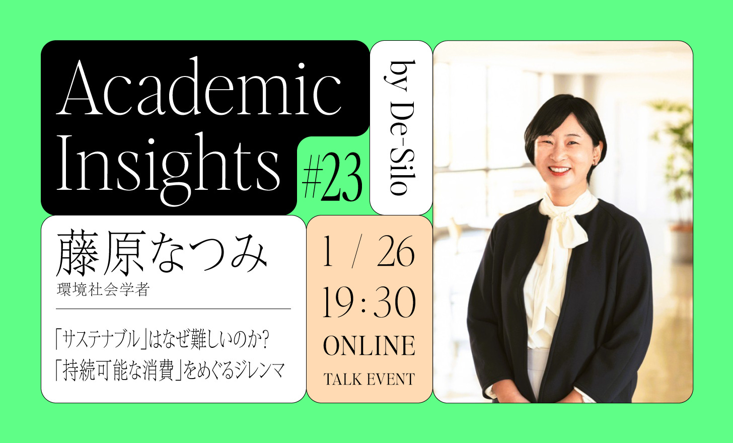 【1/26開催】「サステナブル」はなぜ難しいのか? 「持続可能な消費」をめぐるジレンマ──環境社会学者・藤原なつみ【Academic Insights #23】