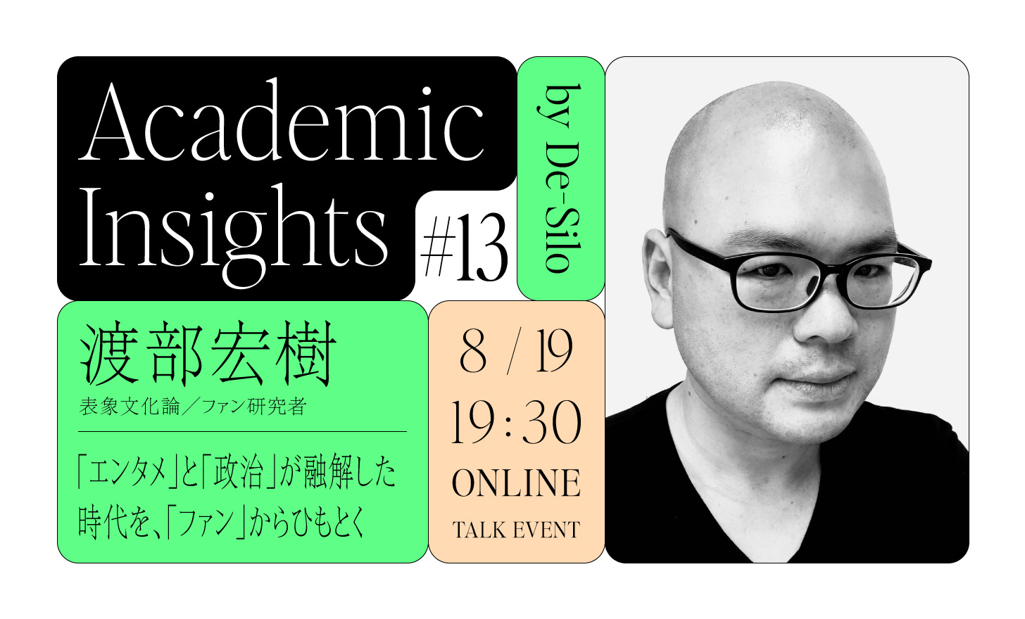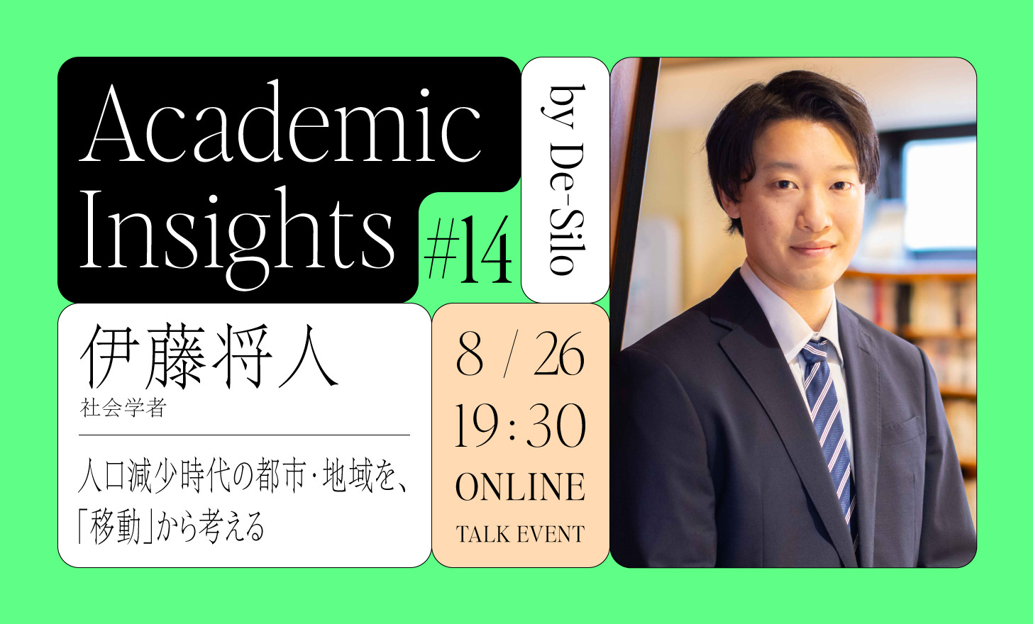 8月に開催するAcademic Insightsのテーマは「人口減少時代の都市・地域における移動」と「「エンタメ」と「政治」が融解した時代におけるファン」になります。イベント参加が無料となる「De-Silo Membership」の会員も募集中です!
