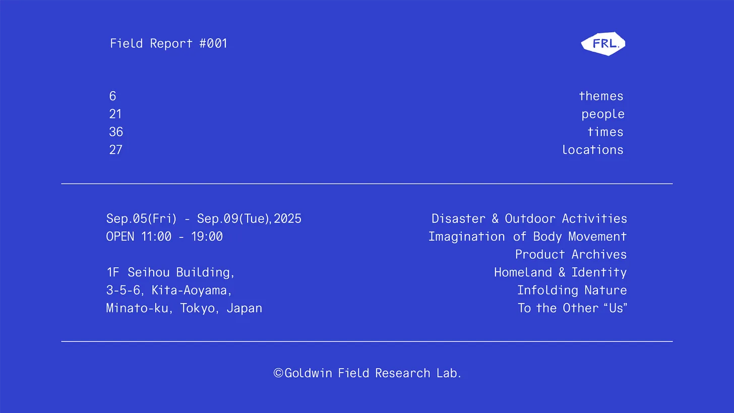 スポーツ、アウトドアアパレルメーカーであるゴールドウインが運営する「Goldwin Field Research Lab.(FRL.)」にて、デサイロは「故郷とアイデンティティ」をテーマとした共同プロジェクトに取り組んできました。
