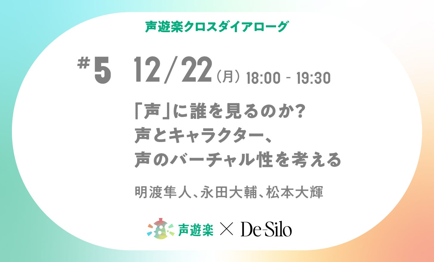 【開催2週間前】第5回:「声」に誰を見るのか?声とキャラクター、声のバーチャル性を考える——明渡隼人、永田大輔、松本大輝/無料@オンライン【声遊楽クロスダイアローグ #5】