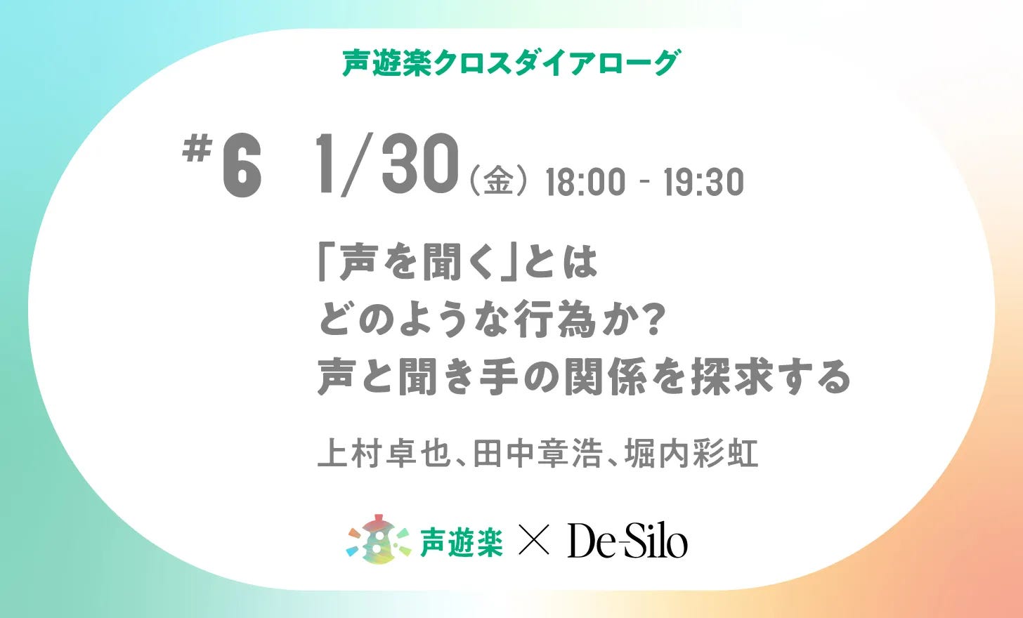 声遊楽クロスダイアローグでは、さまざまな分野の専門家をお呼びし、声をめぐる文化や可能性を広く探求しています。次回のテーマは「『声を聞く』とはどのような行為か?――声と聞き手の関係を探求する」。現象学・心理学・計算論的神経科学の視点を交差させて問い直し、声と聞き手の関係を掘り下げます。