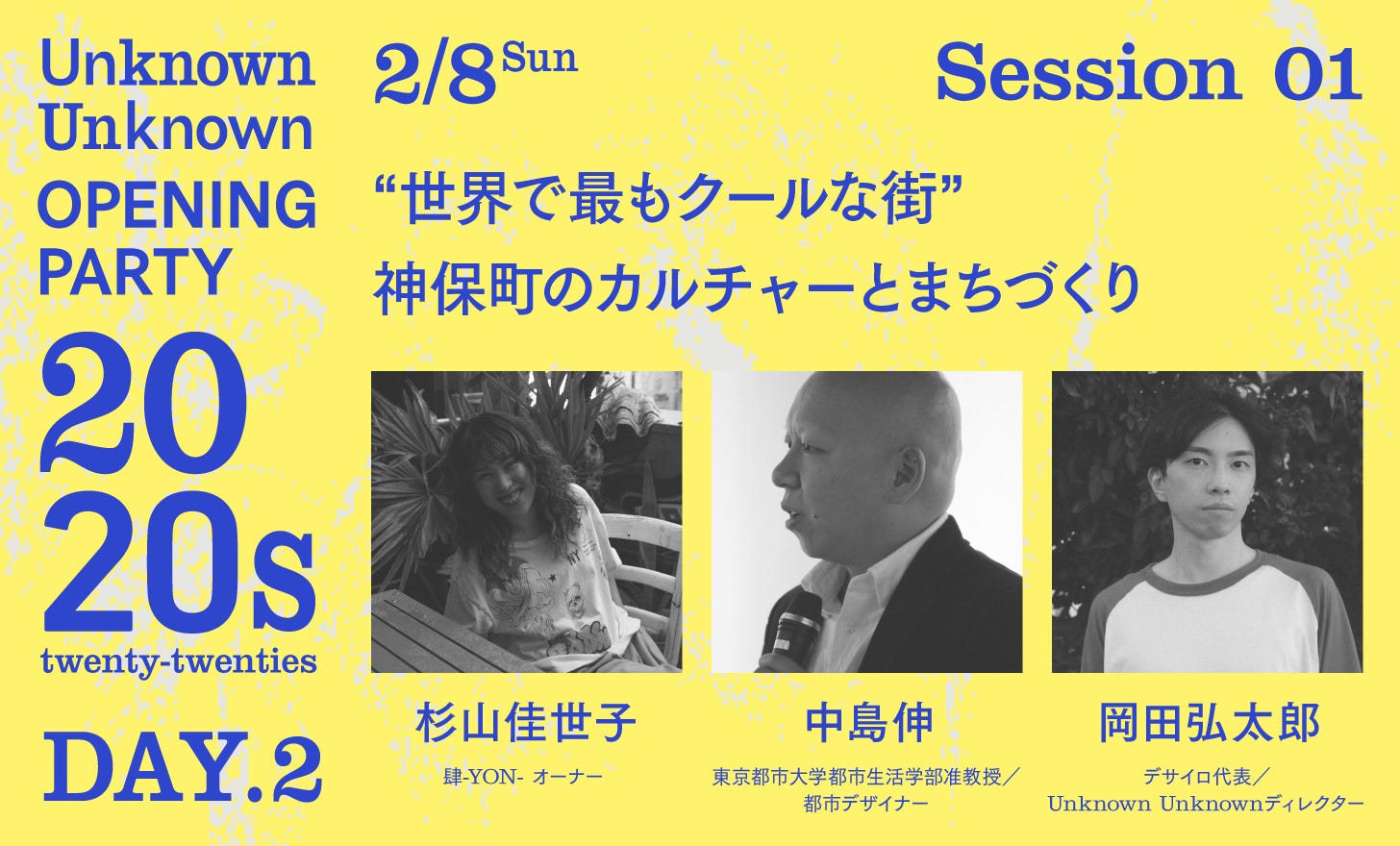 2024年7月にオープンした音、アート、飲食が楽しめる複合ビル「肆-YON-」のオーナーである杉山佳世子さん、神田・神保町エリアのまちづくりに多角的に関わる都市デザイナーの中島伸さんをお招きし、神保町のこれまでとこれからについてお伺いしていきます。おふたりのお話を伺いながら、Unknown Unknownがこのエリアで開業する背景や今後の活動についてもご紹介していきます。