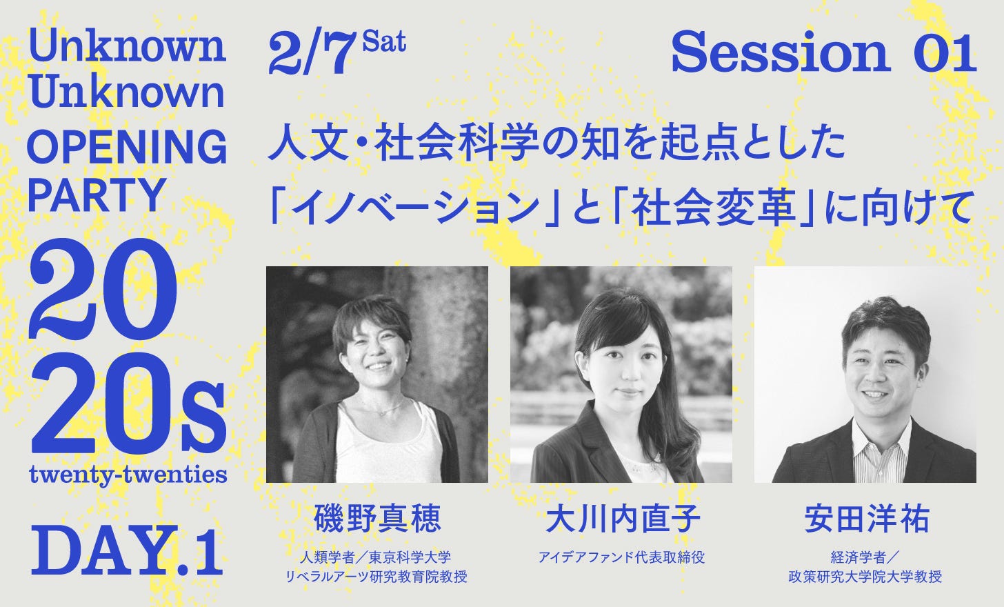 社会に開かれた人類学の実践に取り組んできた人類学者/デサイロ理事の磯野真穂さん、文化人類学によるリサーチやコンサルティングに取り組むアイデアファンド代表の大川内直子さん、そして「経済学のビジネス活用」を目指して株式会社エコノミクスデザインを共同創業し、政府の委員やテレビのコメンテーターとしても活動する経済学者の安田洋祐さんとともに、人文・社会科学の知を起点とした「イノベーション」と「社会変革」について考えます。