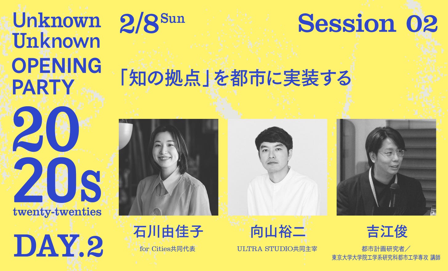 for Cities共同代表理事で、神田にオープンした学びと実践の場「watage」ディレクターの石川由佳子さん、Unknown Unknownの内装設計を担当した建築コレクティブULTRA STUDIO共同主宰の向山裕二さん、『〈迂回する経済〉の都市論』の著者である都市計画研究者の吉江俊さんとともに、2020年代の東京における「知の拠点」の可能性を考えます。